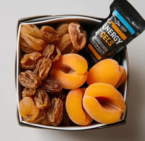 Fruits séchés : Les raisins secs et les abricots sont de bonnes options pour une énergie rapide. Ils sont faciles à transporter et fournissent des glucides naturels.