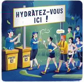 Liquides : L'hydratation est cruciale. Buvez de l'eau ou des boissons isotoniques pour vous assurer que votre corps est bien hydraté avant de commencer la course.